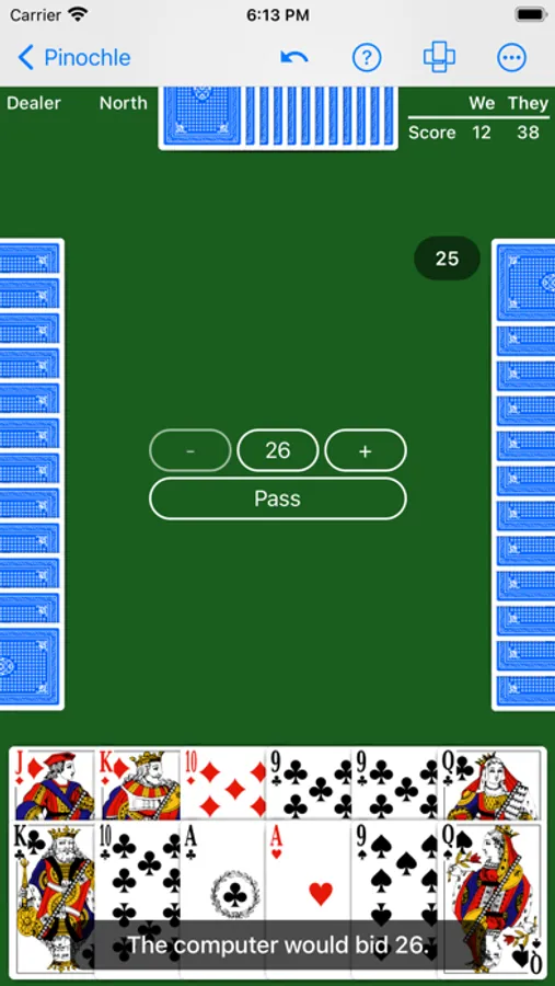 • Meld bidding. Convey your approximate meld points to your AI partner with jump bidding.