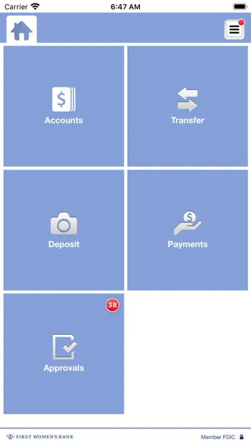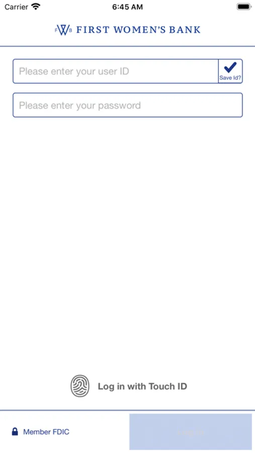 Getting started is easy! Simply download the app and sign in with your First Women’s Bank - Business user credentials. [No additional fees apply.*]. For more information about First Women’s Bank mobile services, please visit FirstWomens.Bank or contact CustomerCare at 800-371-6082. *Carrier’s data rates may apply.