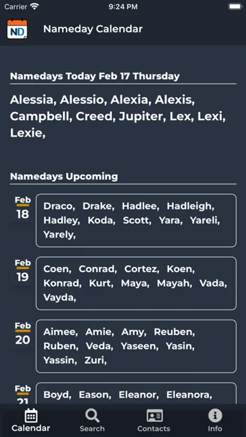 Nameday Calendar app will help you find and manage the namedays of your contacts. Receive email reminders of your contacts namedays.