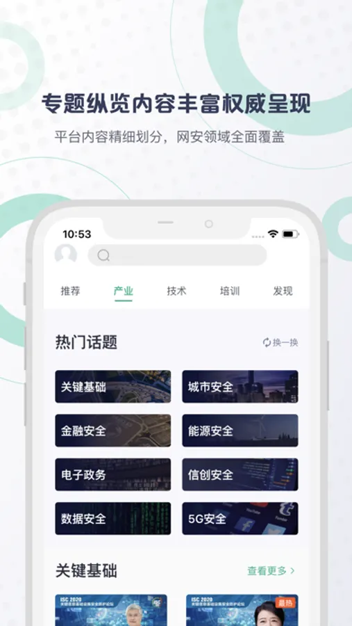 平台横向划分为网安产业、技术、培训等重点内容,纵向包揽关键基础、城市安全、信创安全、IOT、5G安全等诸多行业领域,横纵间实现网安全覆盖。