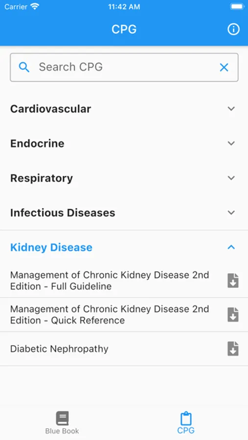 The app also contains CPG Malaysia (Clinical Practice Guidelines).