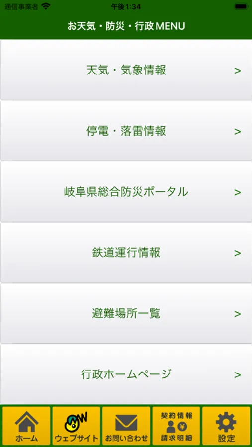 ●お天気/防災情報(天気・警報・注意報情報・停電落雷情報・鉄道運行情報等)