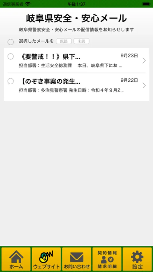 ●安全・安心メール(岐阜県警安全・安心メールの確認)