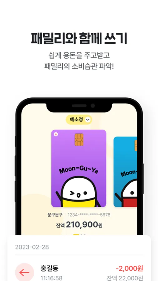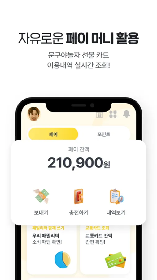 - 문구야 놀자 앱에서 내 패밀리 정보를 등록하고, 우리 가족의 소비 습관을 확인할 수 있어요.