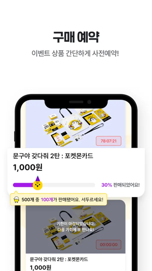 - 푸시 알림을 통해 구매 예약 상품 현황을 실시간으로 공유해 줘요.