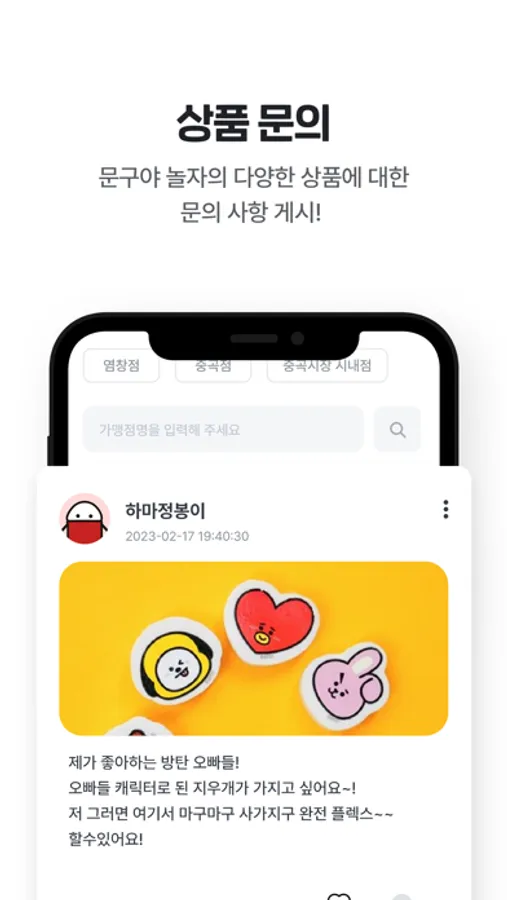 - 문구야놀자에 입고되길 원하는 상품에 대한 요청이나 그 외 상품 관련 문의 사항들을 자유롭게 남길 수 있어요!