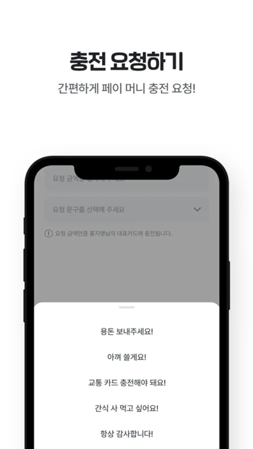 - 패밀리에게 쉽고 빠르게 용돈을 요청할 수 있어요!