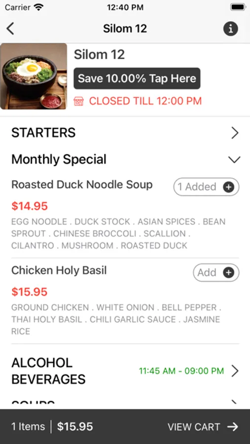 1. Get the Silom 12’s Online Ordering app and conveniently order from anywhere on your iPhone.