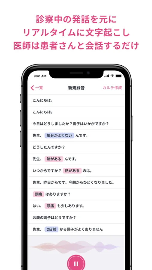患者さんとの会話の内容を電子カルテに転記可能な形式にAIが翻訳します。