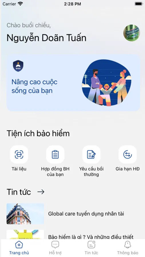 Ứng dụng BH365 ra đời cùng với phương châm “You never walk alone”, là cách chúng tôi luôn đồng hành cùng khách hàng trong suốt hành trình tham gia các sản phẩm bảo hiểm của Global Care thông qua nhiều tiện ích: