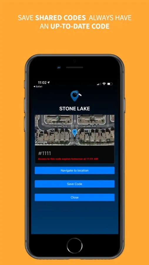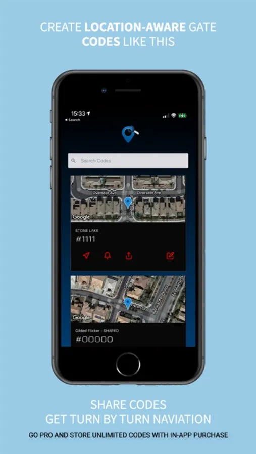 Gate Code enables you to store, manage, and share any type of code. With location-aware codes, your phone will automatically display your code as a notification.