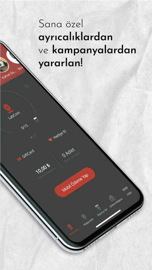 Mobil Cüzdanına önceden TL yükleyerek hediye LabCoin puan kazanabilir ve biriktirdiğin LabCoin’ler ile hediye içecek alabilirsin.