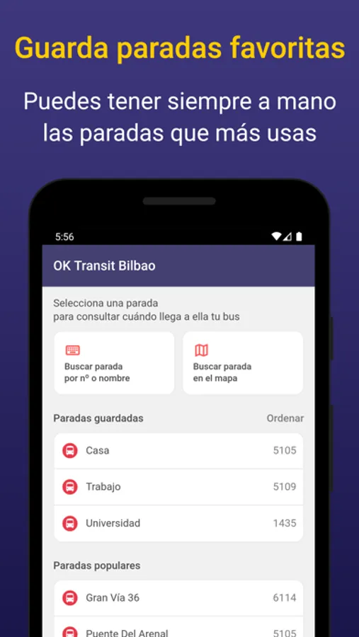 - Guarda en favoritos las paradas que usas habitualmente para tenerlas siempre a mano.