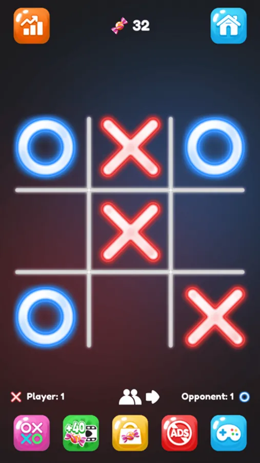 Play Tic Tac Toe XOXO with friends and family! Enjoy the childhood game with different game modes, colorful themes and key statistics. Play with AI or with your friend in this turn-based offline tic tac toe game.