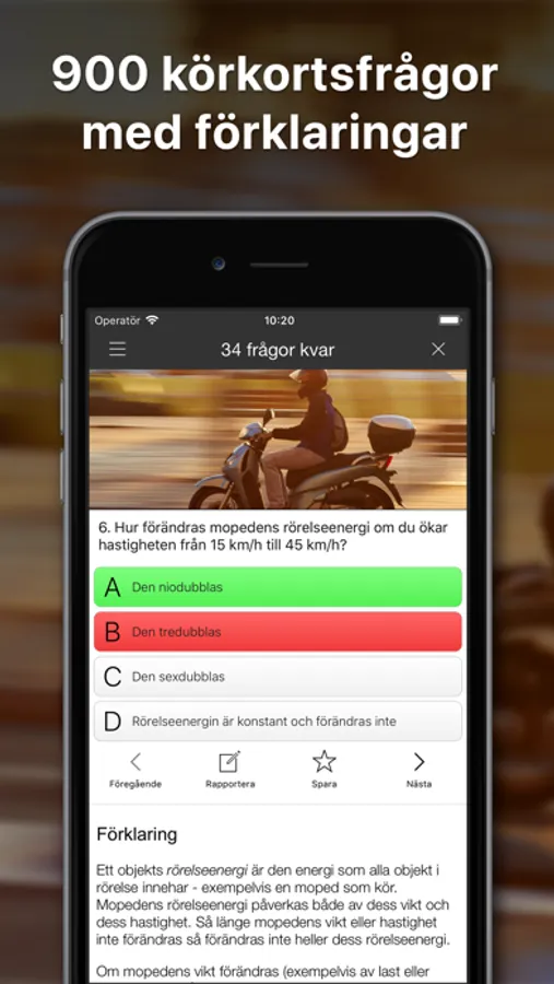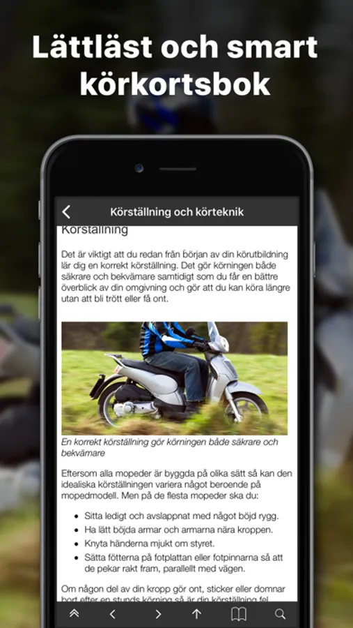 Köp iKörkort Moped och klara teoriprovet för moped på första försöket! Betala en gång och få tillgång till appen för alltid - inga månadskostnader, inga dolda avgifter, ingen reklam.