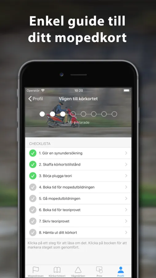 • Checklista som guidar dig genom alla stegen fram till ditt körkort.