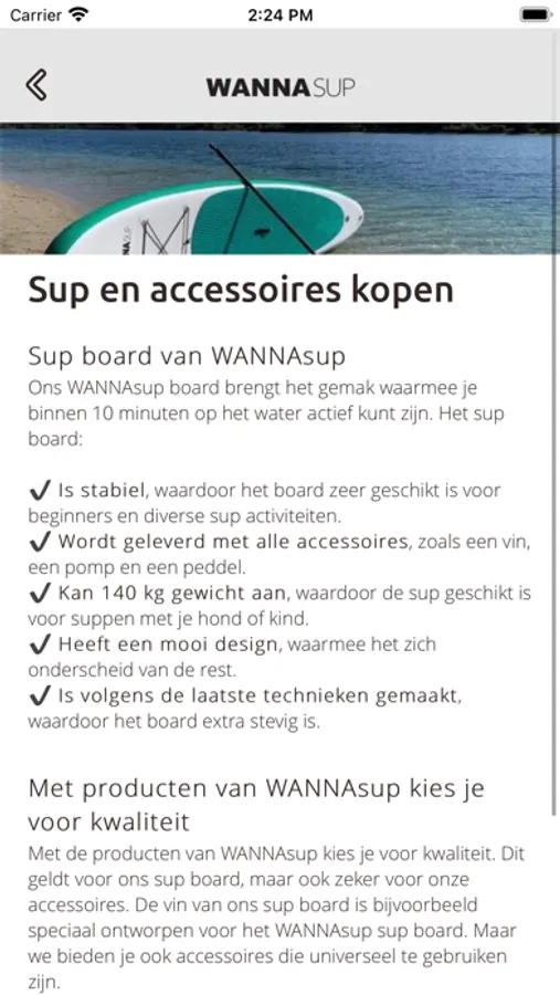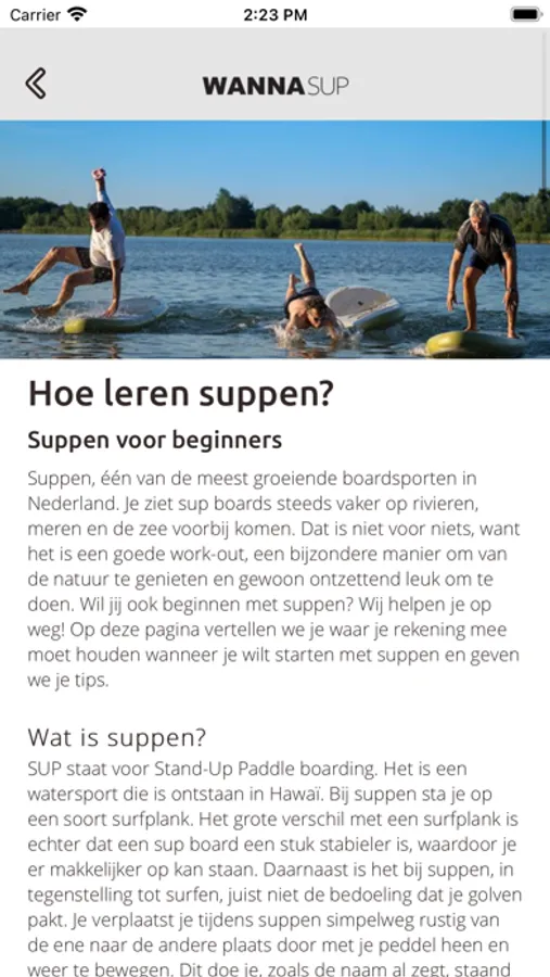 * Sup & accessoires kopen: als je voor het eerst hebt gesupt en ook een sup wilt aanschaffen of je sup wilt vervangen door een board met standaard heel veel opties, dan kun je ook direct een