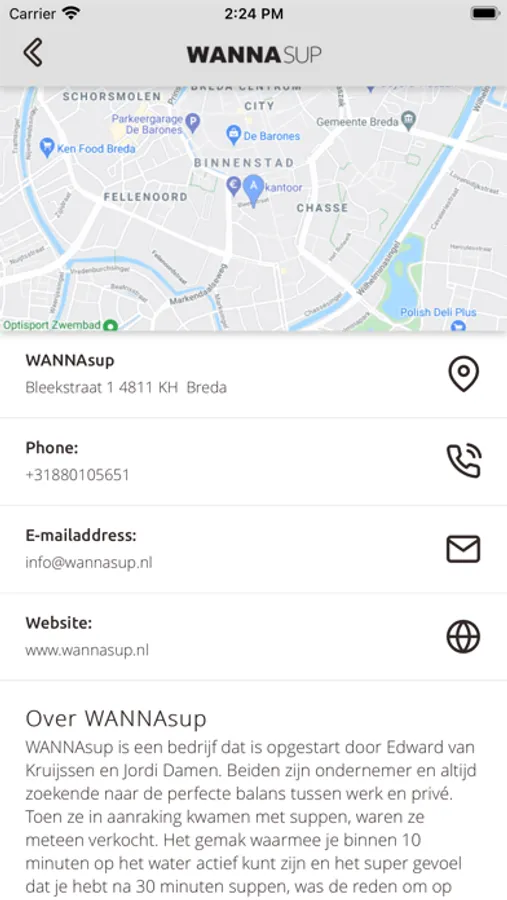 * Sup routes: op een google maps kaartje kun je alle mogelijke sup routes selecteren inclusief het adres van de opstapplaatsen, de routebeschrijving, waar je wat kunt eten of drinken en