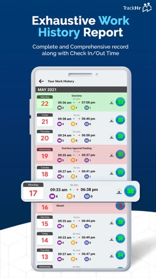 TrackHr provides an efficient way to establish a system for the allocation , performing and informing about all the tasks and activities to the associated people of the organisation. With on time status updates, proper authentications and approvals and all of this over the cloud (anywhere and anytime), making the whole experience of managing the task even more efficient and easier, while also increasing the performance with positive competition using leader boards, top performer charts and individual scores, recommending areas to focus on & improve.