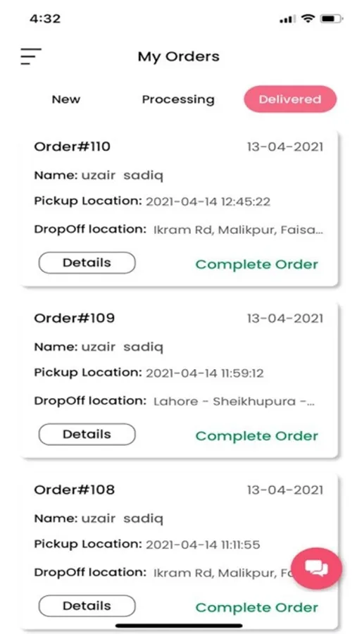 Rider can also see their history and can also see their delivered and not delivered orders.