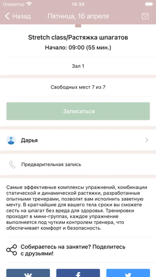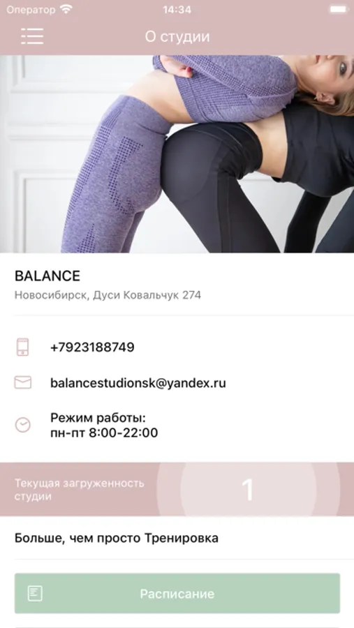 C помощью приложения Вы сможете следить за расписанием студии, записываться на занятия, получать информацию об изменениях, получать напоминания о предстоящем занятии в Вашем расписании, следить за новостями и специальными предложениями