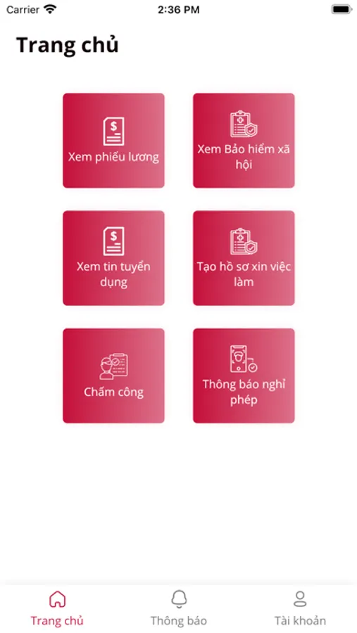 Phần mềm hỗ trợ chấm công, xin nghỉ phép, xem phiếu lương, xem quá trình đóng BHXH, xem tiến trình giải quyết các khiếu nại, thắc mắc của người lao động. App cho phép phản hồi thông tin hai chiều giữa người lao động và doanh nghiệp.
