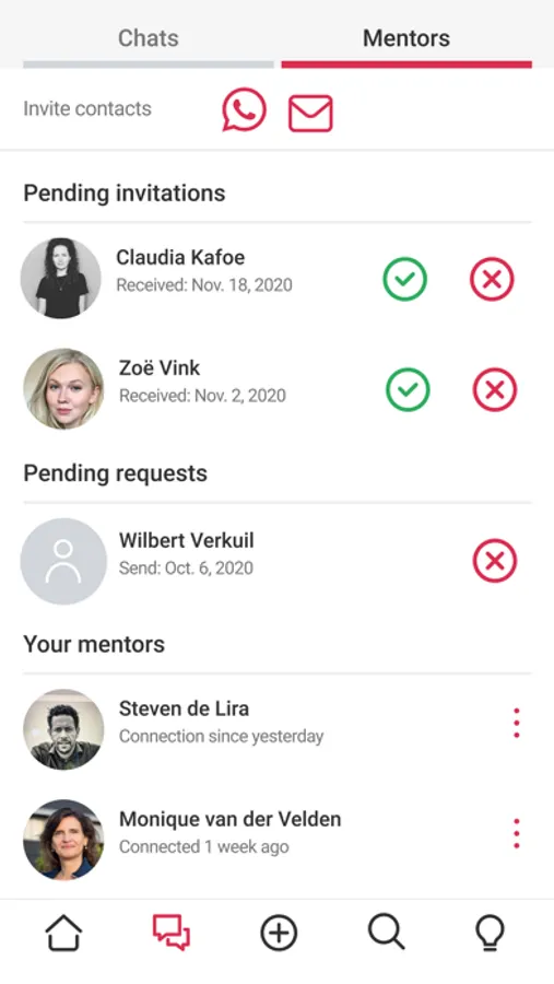 * Build your own network of mentors; invite friends, family and colleagues or connect with mentors from our extensive mentor network.