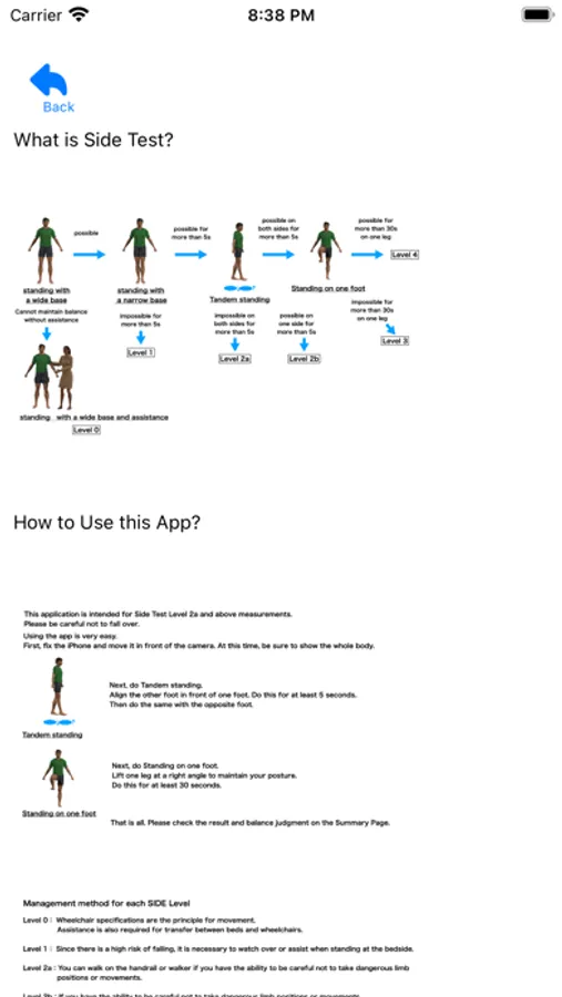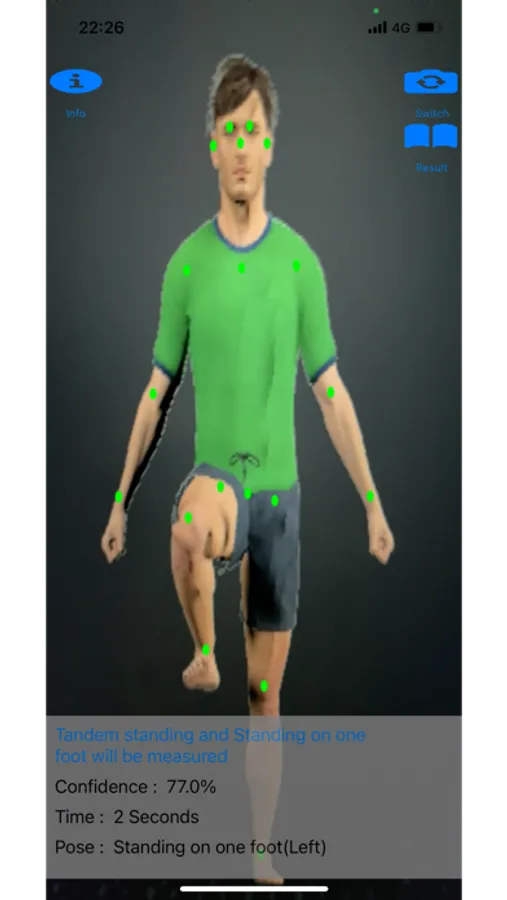 It automatically counts the number of seconds when you do a left-right tandem standing and standing on one foot in front of the camera.