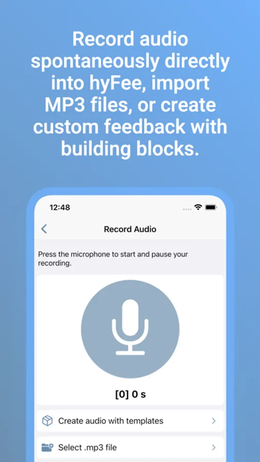 > Capture: You record audio, images or videos directly into hyfee or select existing media from the photo library. If necessary, simply combine any feedback types into one package.