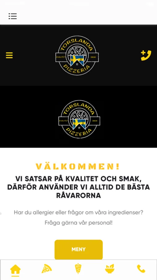 Det är en digital meny från Torslanda Pizzeria.