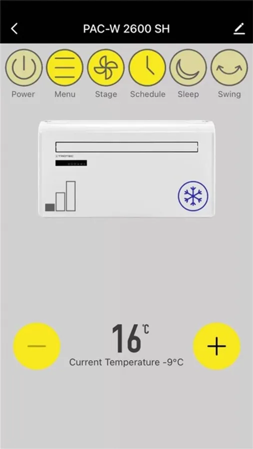 Trotec Assistent is the smart remote control for all Trotec HomeComfort devices supported by Trotec Assistent, such as the air conditioner PAC W 2600 SH. With this mobile app, you can control your HomeComfort device not only at home, but also when you are on the move. For example, switching on or off, changing the mode from cooling to heating, ventilation or dehumidification, changing the target temperature or activating the timer function – easily and quickly via WLAN with Trotec Assistent.
