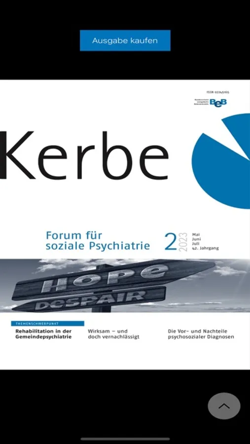 Die Kerbe versteht sich als das Forum für Mitarbeiterinnen und Mitarbeiter, für Angehörige und Psychiatrie-Erfahrene in der Sozialpsychiatrie und will ein diskursives Medium sein, in dem verschiedene Ansätze kontrovers diskutiert und wichtige Entwicklungen in Zusammenhänge gestellt werden. Dazu gehören aktuelle Beiträge aus Theorie und Praxis sowie die Vorstellung von Modellprojekten, die Ergebnisse von Forschungsvorhaben, die Besprechung aufschlussreicher Literatur sowie ein Blick auf die Nachrichtenlage. Die Beiträge erscheinen in diese App ebenso wie in der gleichnamigen gedruckten Fachzeitschrift. Herausgeber im Sinne des Presserechts ist der Bundesverband evangelische Behindertenhilfe (BeB). Zahlungspflichtige werden Inhalt im Auftrag des BeB von der Evangelischen Gemeindepresse angeboten.