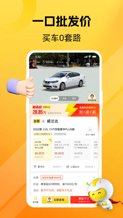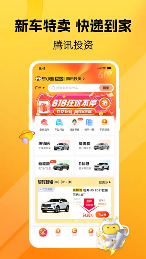 “车小蜂”由腾讯战略投资,是一家致力于帮老百姓买到便宜又靠谱的新车商城,厂家全新车源,没有经销商环节,并提供手机下单、快递到家等买车服务。