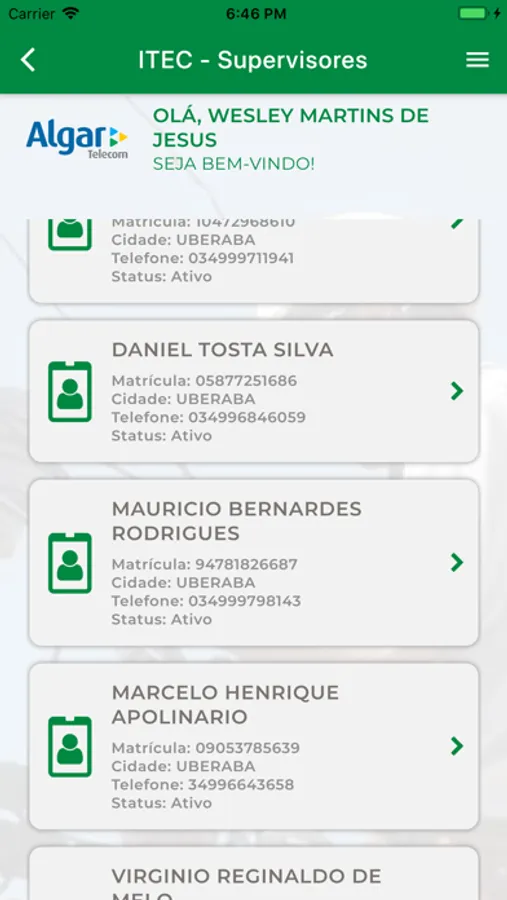 Aplicativo de uso exclusivo dos supervisores de campo da Algar Telecom.