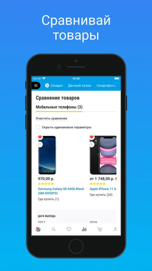 Возможность сравнить и добавить в "Избранное" понравившиеся позиции.