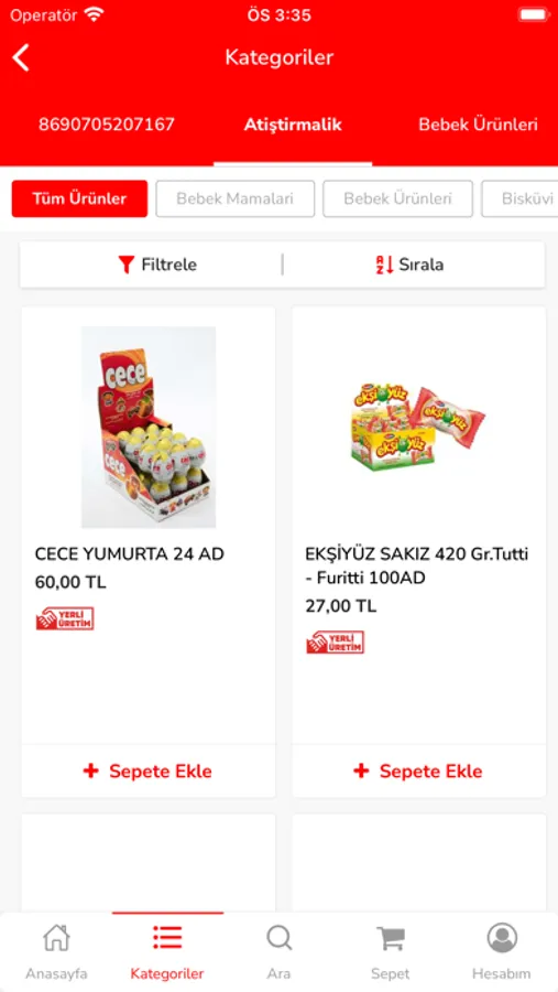 * Ürün kategorilerinde filtreleme yapabilirsiniz