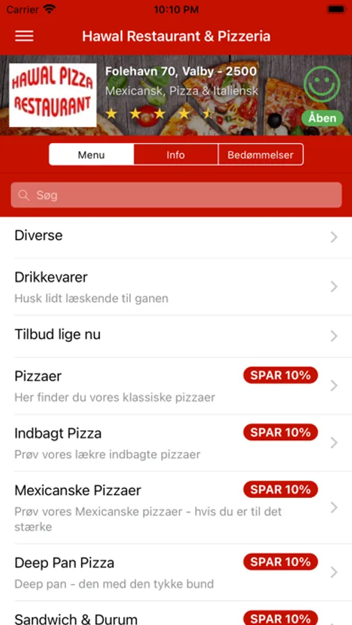 Bestil pizza, burger, pasta, m.m. med få tryk, nemt og hurtigt!
