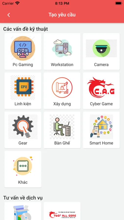 Bên cạnh đó, ứng dụng cũng hỗ trợ khách hàng các dịch vụ về Gia hạn key CAG Boot, Hỗ trợ đại lý, thanh toán online, thay đổi thông tin và yêu cầu xuất hóa đơn VAT với các mục tương ứng, chỉ với 1 click, khách hàng dễ dàng gửi thông tin và yêu cầu đến các phòng ban hỗ trợ.