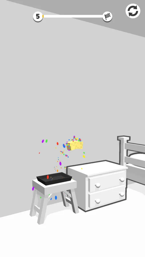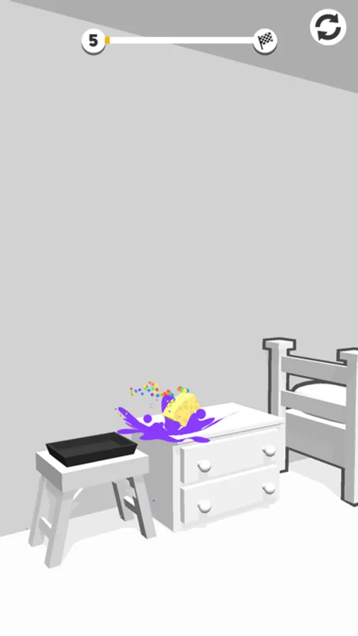 Flip the sponge, land to paint, and restore colors. Make happy customers by painting all the white objects before completing the levels! Enjoy this delightful and satisfying physics game!