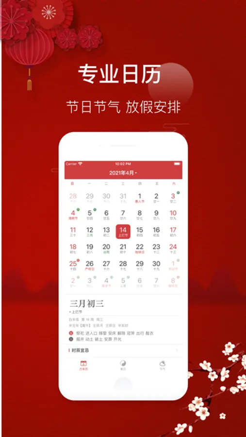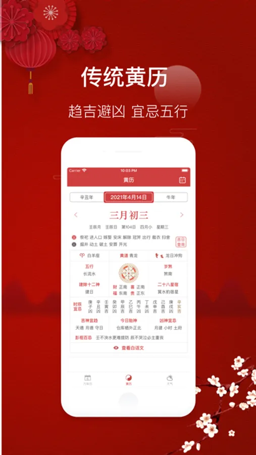 2、黄历:黄历宜忌、吉日查询、五行冲煞、建除十二神、彭祖百忌、二十八星宿、风水罗盘、黄历现代文解析、吉日查询;
