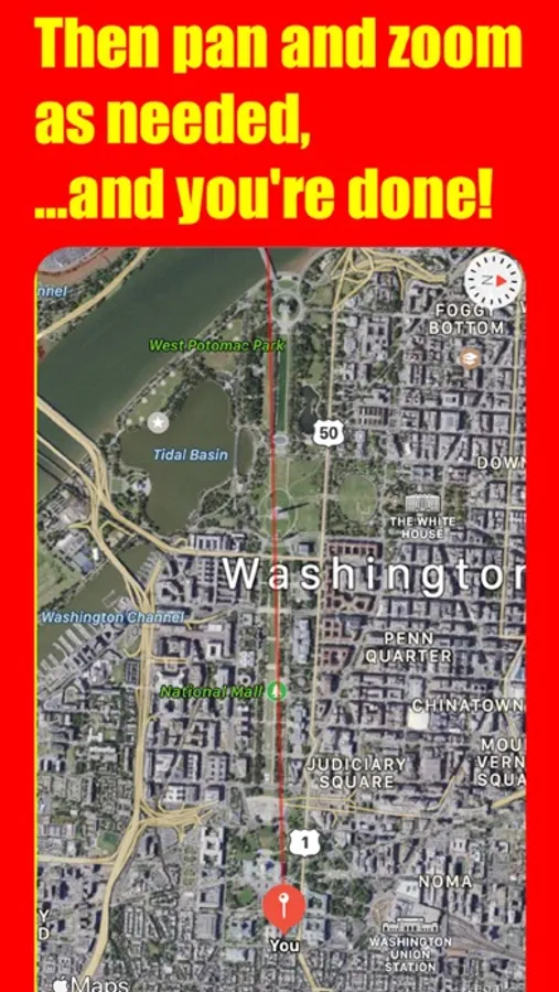 Whether it's a city you see in the distance and are not sure which it is. A mountain, or a building... Just point the app at it and tap, and get a map with a line showing your line of sight.