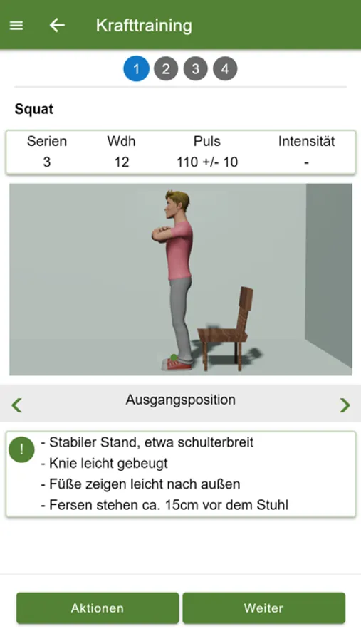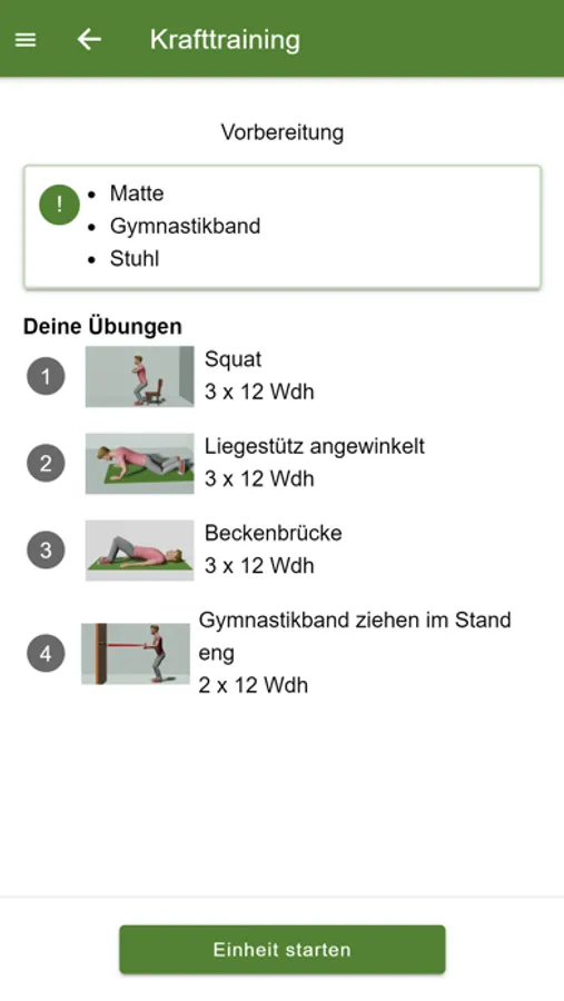 - Vermittlung von Kräftigungstraining, Ausdauertraining und Entspannungsübungen