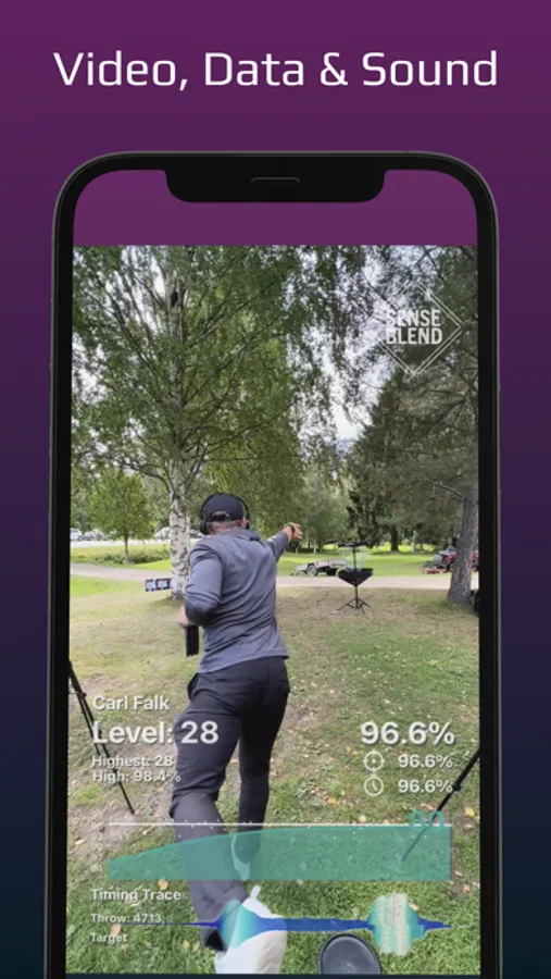 SENSEBLEND collects movement data and, in real-time, converts your motion into an abstract, yet understandable and guiding sound. SENSEBLEND is used to train and perfect repetitive motions in sports such as discgolf. Organize your movements in games, listen to and compare them to other movements, follow up your progress with statistics, film your movements and get videos with data and sound overlays.