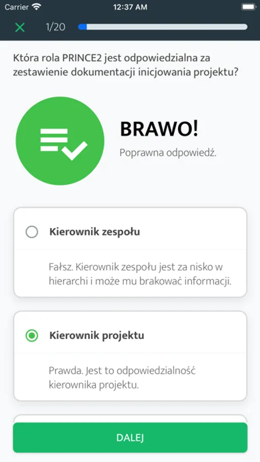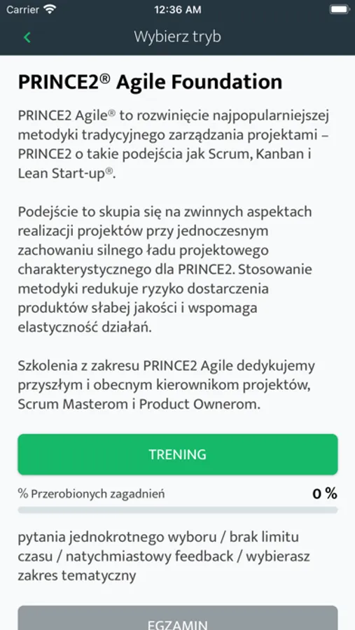 - sprawne utrwalanie wiedzy w formie quizów i egzaminów próbnych w procesie przygotowań do akredytowanych egzaminów typu PRINCE2®, AgilePM®, Change Management®, M_o_R®, ITIL® Foundation