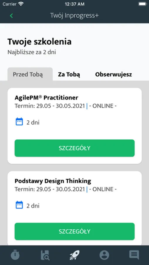 - wygodne korzystanie z subskrypcji Inprogress Plus, która daje możliwość nielimitowanego udziału w akredytowanych szkoleniach realizowanych online (prowadzonych "na żywo" przez trenera), z dowolnego miejsca na świecie