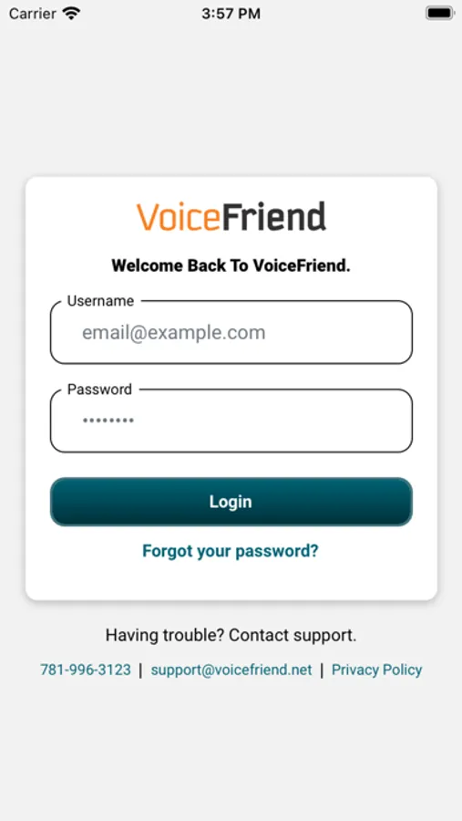 A VoiceFriend account is necessary to log in to the application.