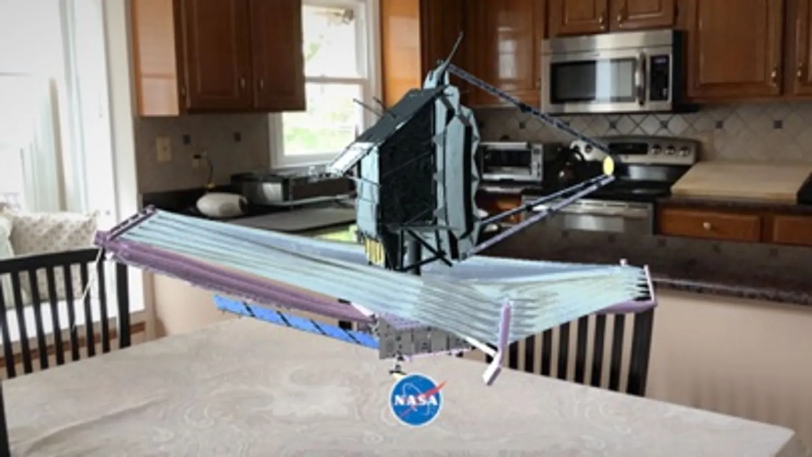 With NASA preparing to launch the new James Webb Space Telescope, there’s never been a better time to learn about this extraordinary mission. To get you ready, The Space Agency has developed a new augmented reality app for iOS devices, and once you get your hands on it, you’ll start seeing JWST everywhere. Using this cool tool, anyone with an iPhone or iPad can experience the world’s most advanced scientific instrument in just about any space you’d like, including your own. In augmented reality, you can place a full sized, virtual model of the Webb telescope in your own backyard. Or, if you want to see the telescope in a size that fits a smaller, real-world space like your classroom or workspace, you can adjust the size and virtually place it on your desk or kitchen table. Scale it, turn it, check out the parts of the great machine labeled and annotated as it appears to float in front of you.