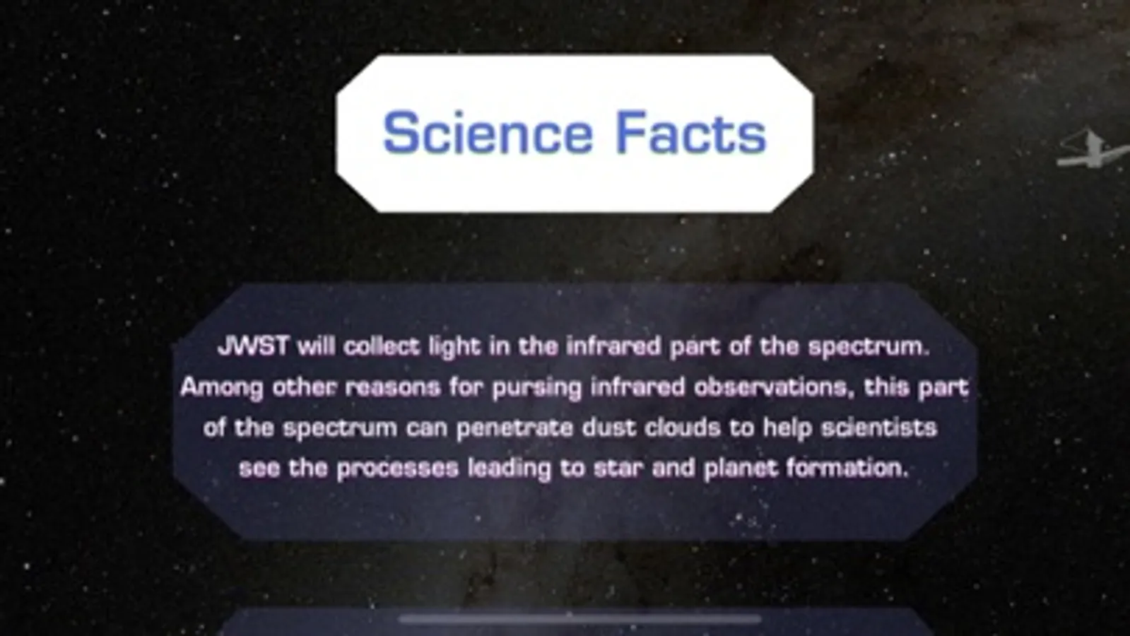 The James Webb Space Telescope Augmented Reality app also delivers lots of rich media with awesome facts about the mission. From video and audio presentations to spectacular photo galleries, NASA built this app as a way for you to get a close-up view of what matters most about The Webb Telescope.