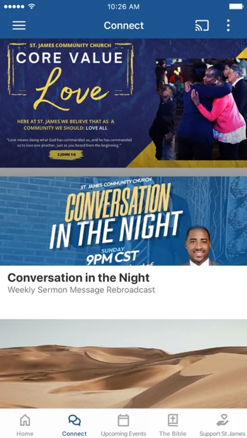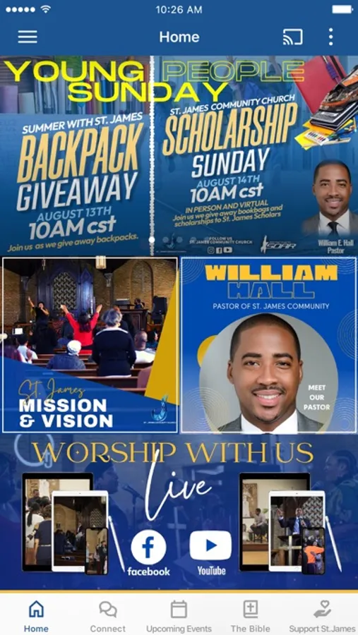 This app will help you stay connected with the day-to-day life of St. James Community Church. With this app you can: watch or listen to past messages; stay up to date with push notifications; share your favorite messages via Twitter, Facebook, or email; and download messages for offline listening.