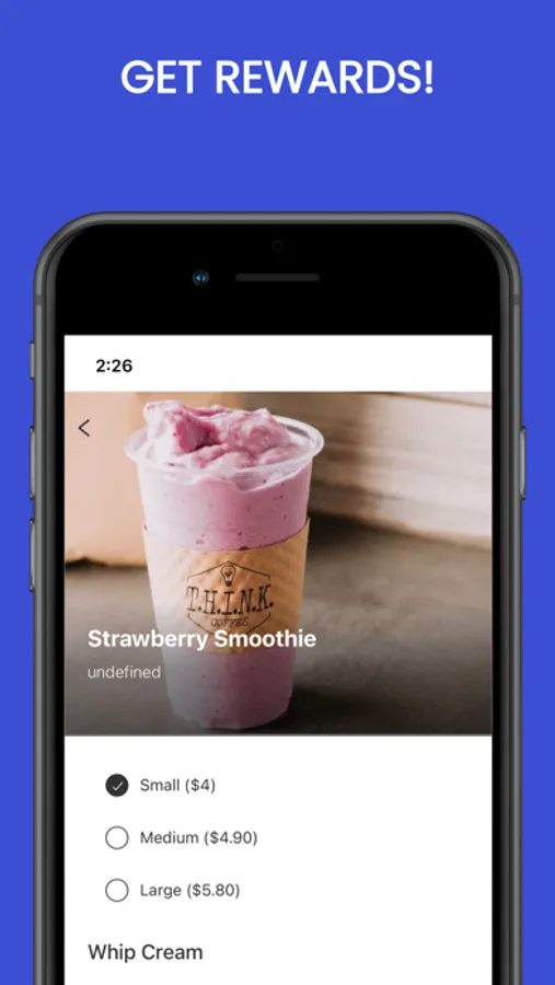 The T.H.I.N.K. Coffee app is a convenient way to pay in store or skip the line and order ahead. Rewards are built right in, so you'll collect points and start earning free drinks and food with every purchase.